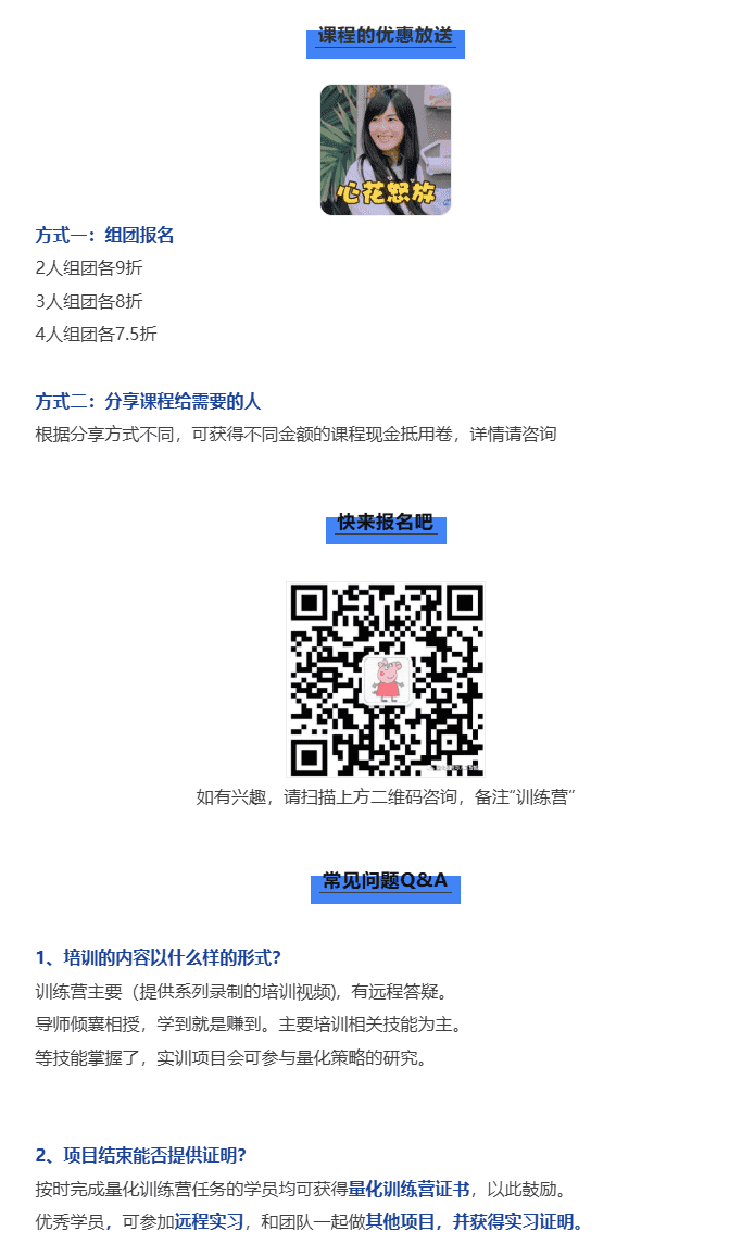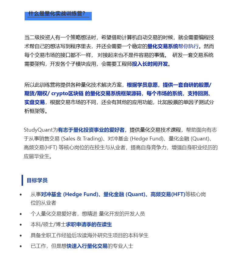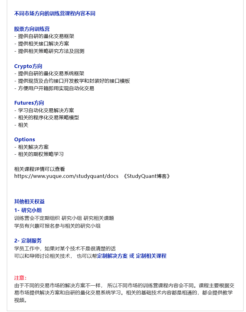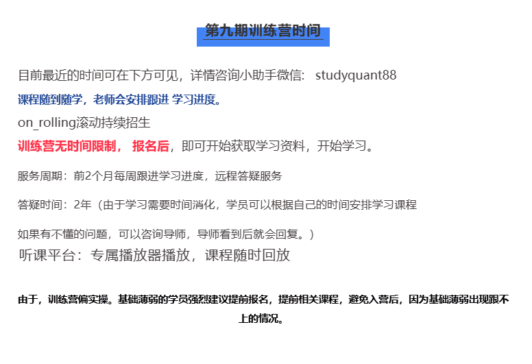 最新价格可在公众号 (studyquant) 回复 训练营 查询