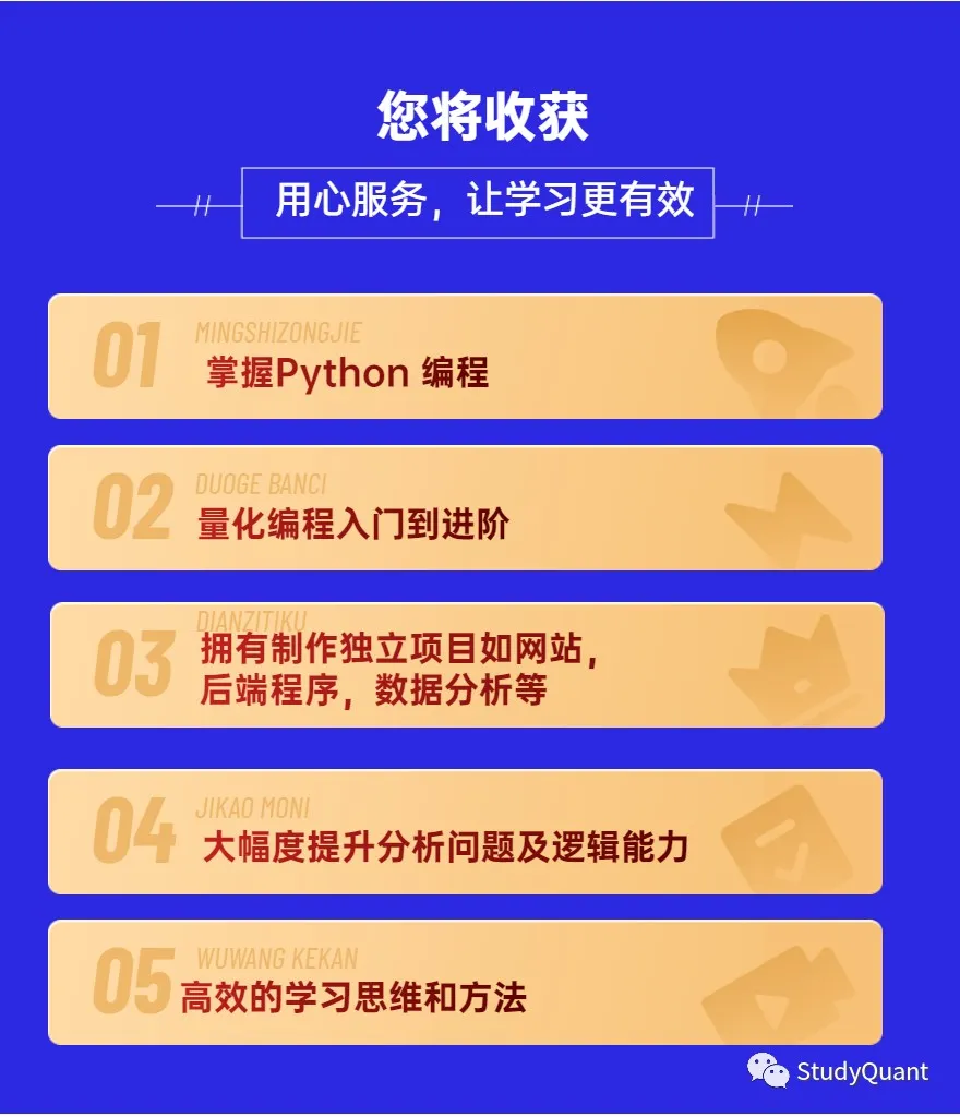 福利5. 完成相关作业,不定时赠送BONUS量化课程已于鼓励