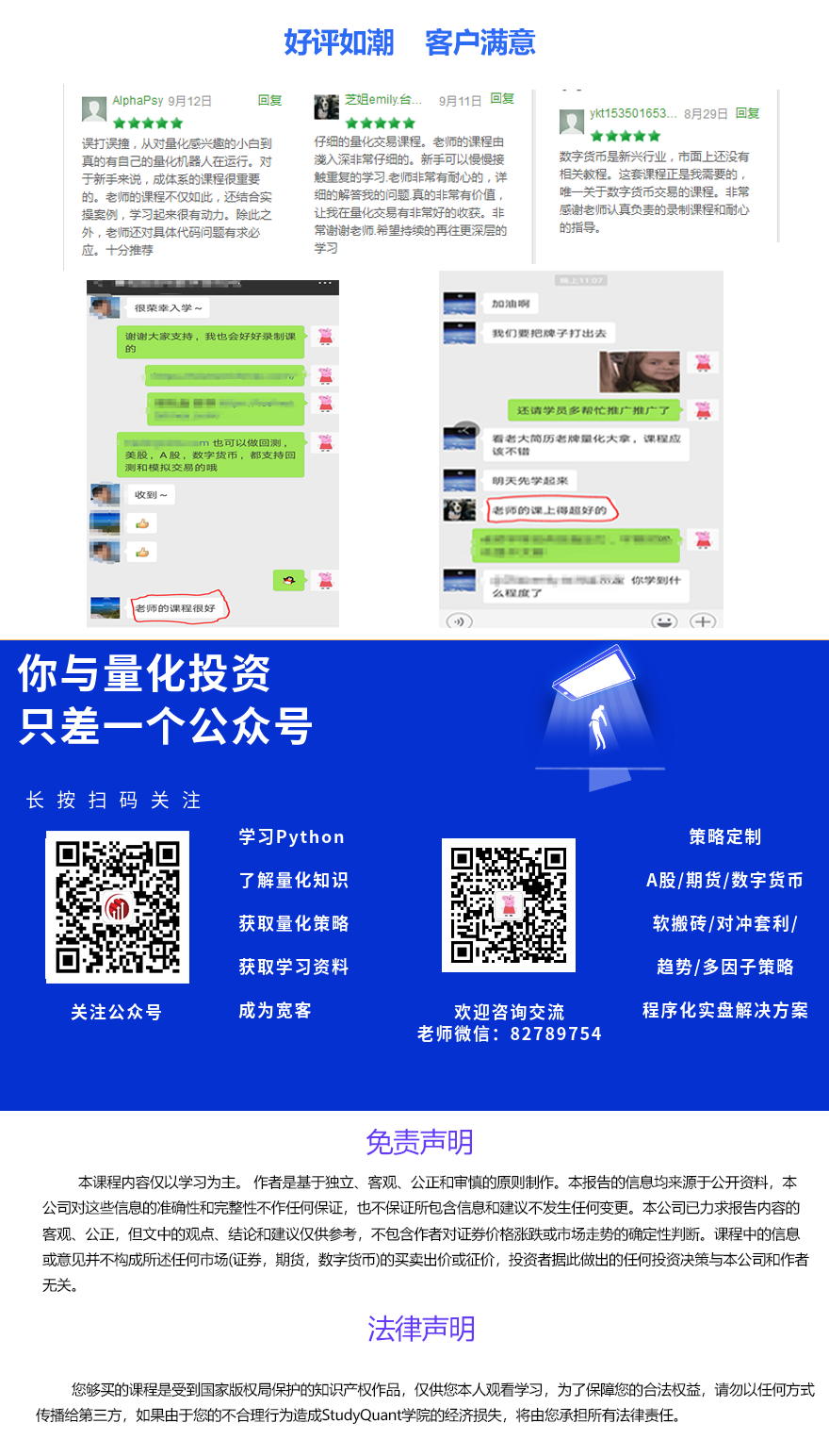 5. 免责声明:课程内容技术学习为主,不构成投资建议。如您对此造成的任何资金损失,需要由阁下您自行承担。