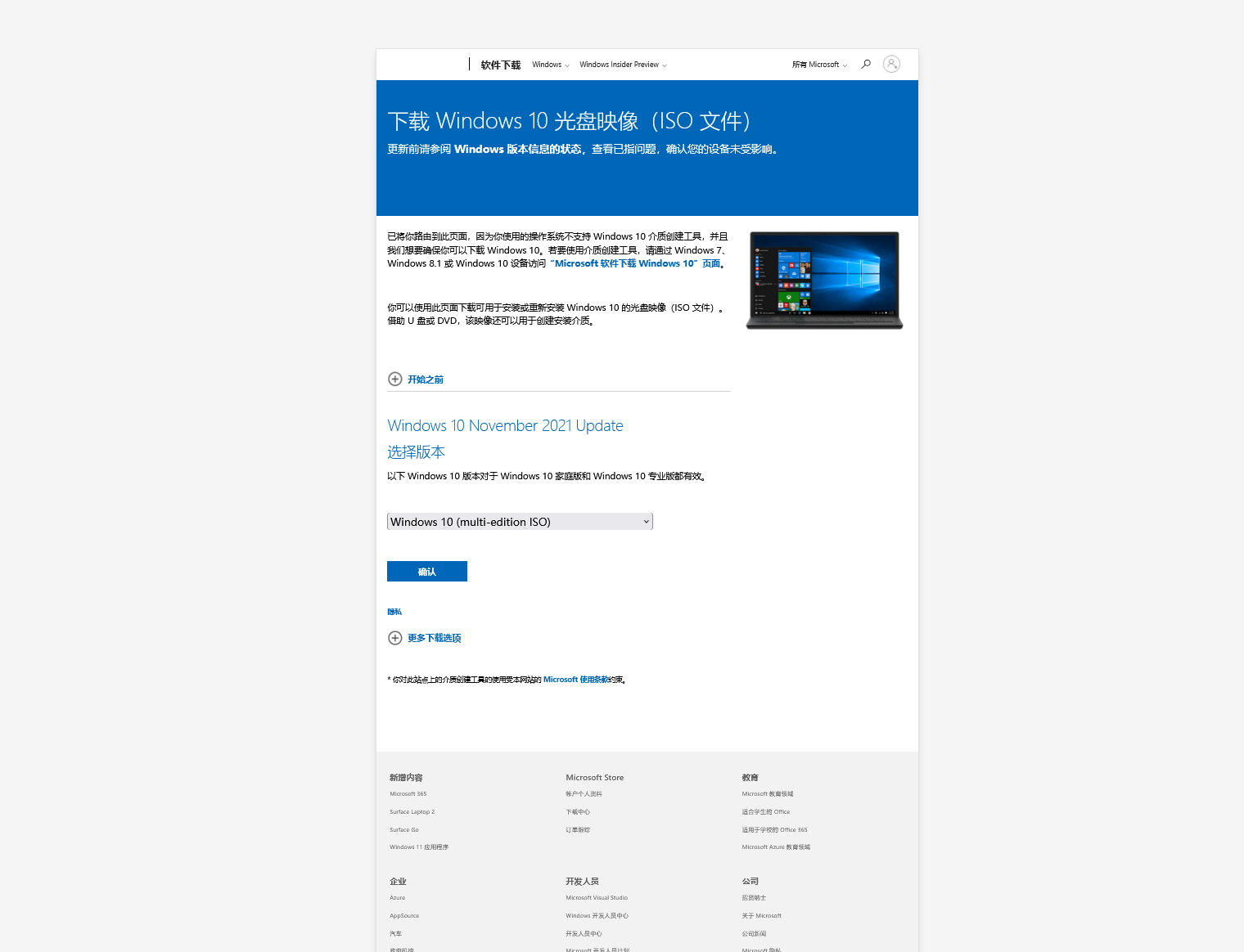 下载ISO 文件, 这里最新的可是21H2版本哦!