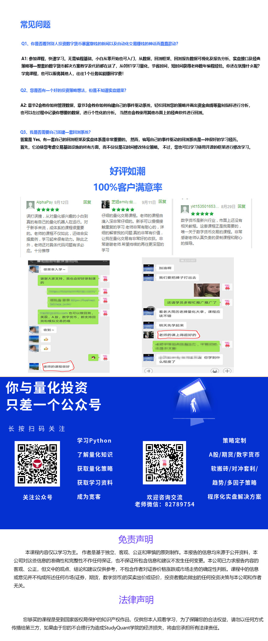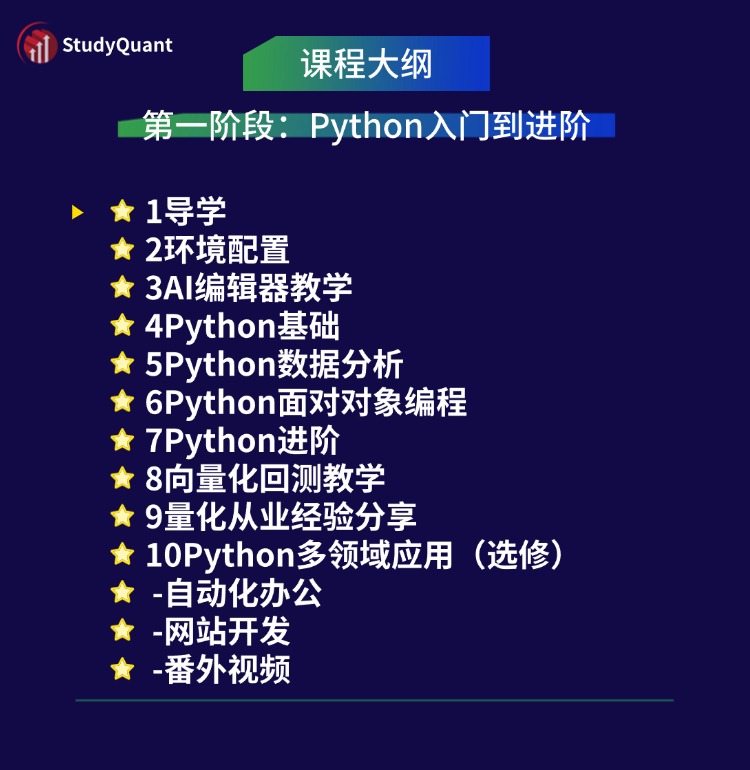此课程主要针对 期货市场与量化程序化交易 为主题, 提供培训课程。 主要讲解 使用 程序化交易软件 编写量化交易策略脚本。 提供多个策略脚本示例。 Python课程为赠送课程,不是此课程的教学目的。
