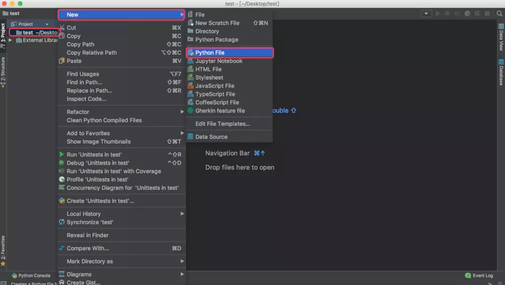 3.文件建立成功后,还只是一个空的文件,需要向里面新增Python文件